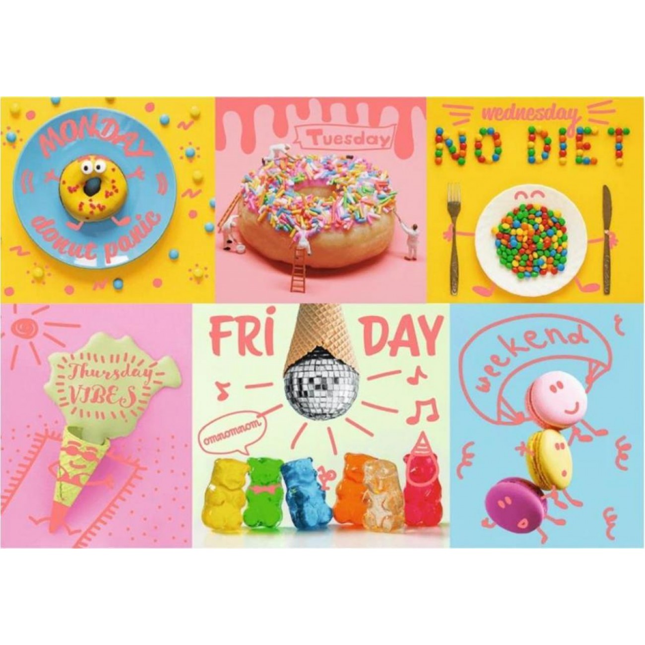 Опис Пазл Trefl 1000 деталей: Солодкий тиждень (неонові пазли)