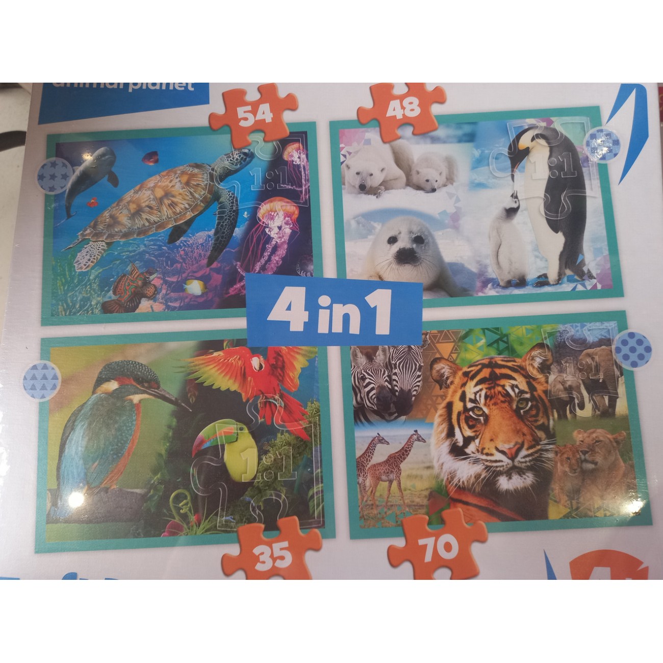 Чотири різні картинки пазлів, різної складності: 35, 54, 48 та 70 елементів. Гарна якість елементів, виробник Польща
