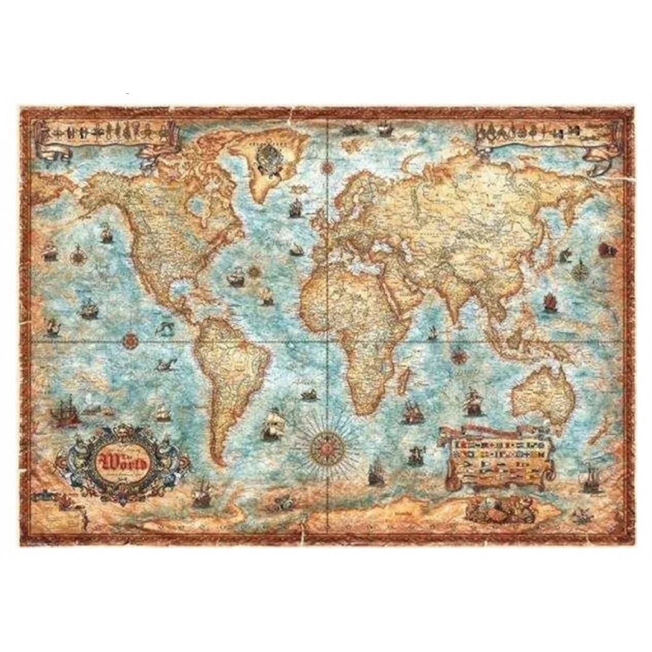 ПазлWorld"мого німецького бренду/b>, який представляє детальну карту світу в античному стилі.опливий пазл перенесе вас в епоху великих відкриттів. Зображення наповнене дрібними деталями: від старовинних кораблів та вітри...