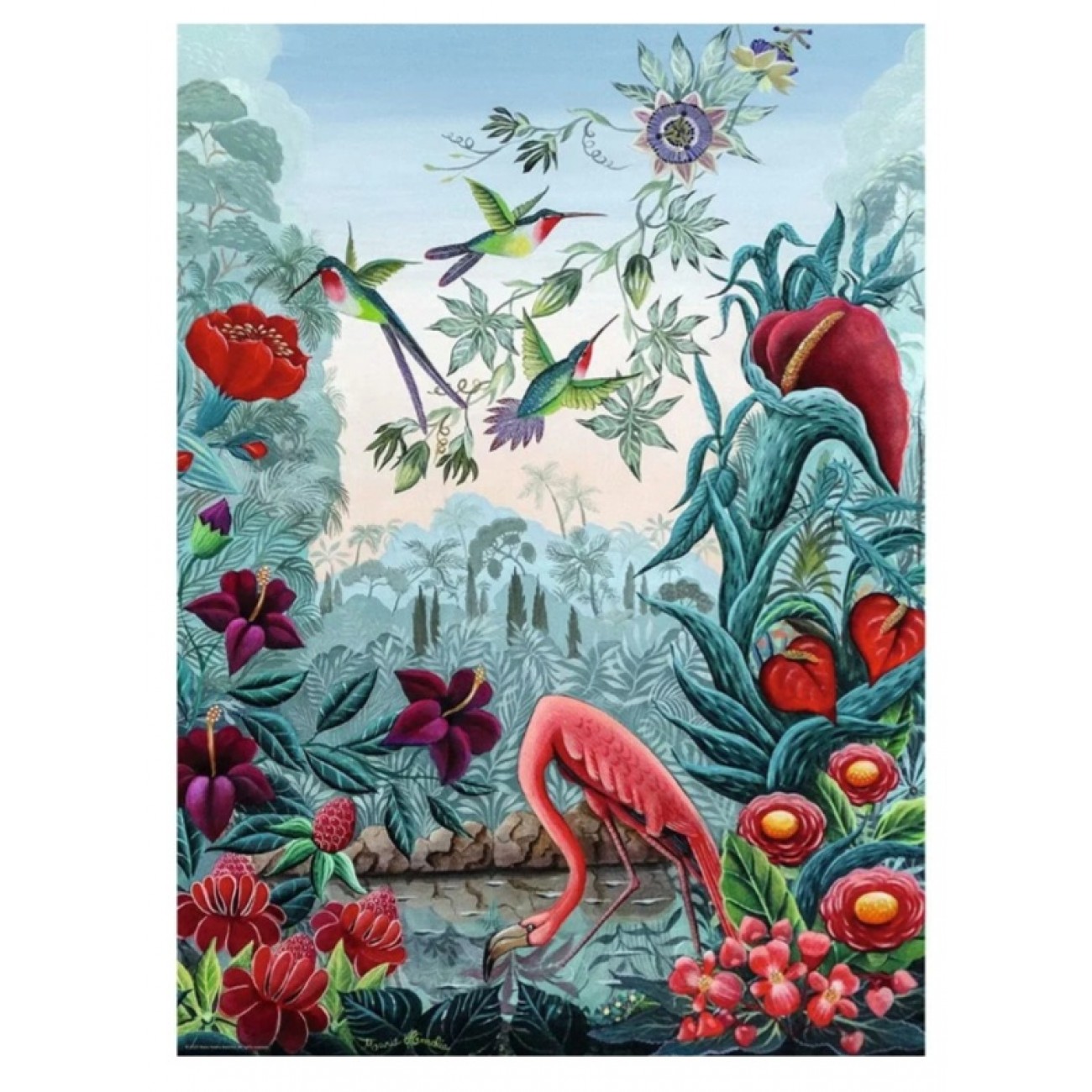 ПазлParadise — це гармонійне поєднання природи та фантазії. Художниця Марія Амалія Бартоліні використовує унікальну техніку «під склом», створюючи ілюзію глибини та чарівності. Насичені кольори, деталізовані зображення птахів та квітів роблять цей пазл ідеальним вибором для тих, хто шукає відпочинку від повсякденної метушні та прагне додати дещицю магії у свій вечір.
