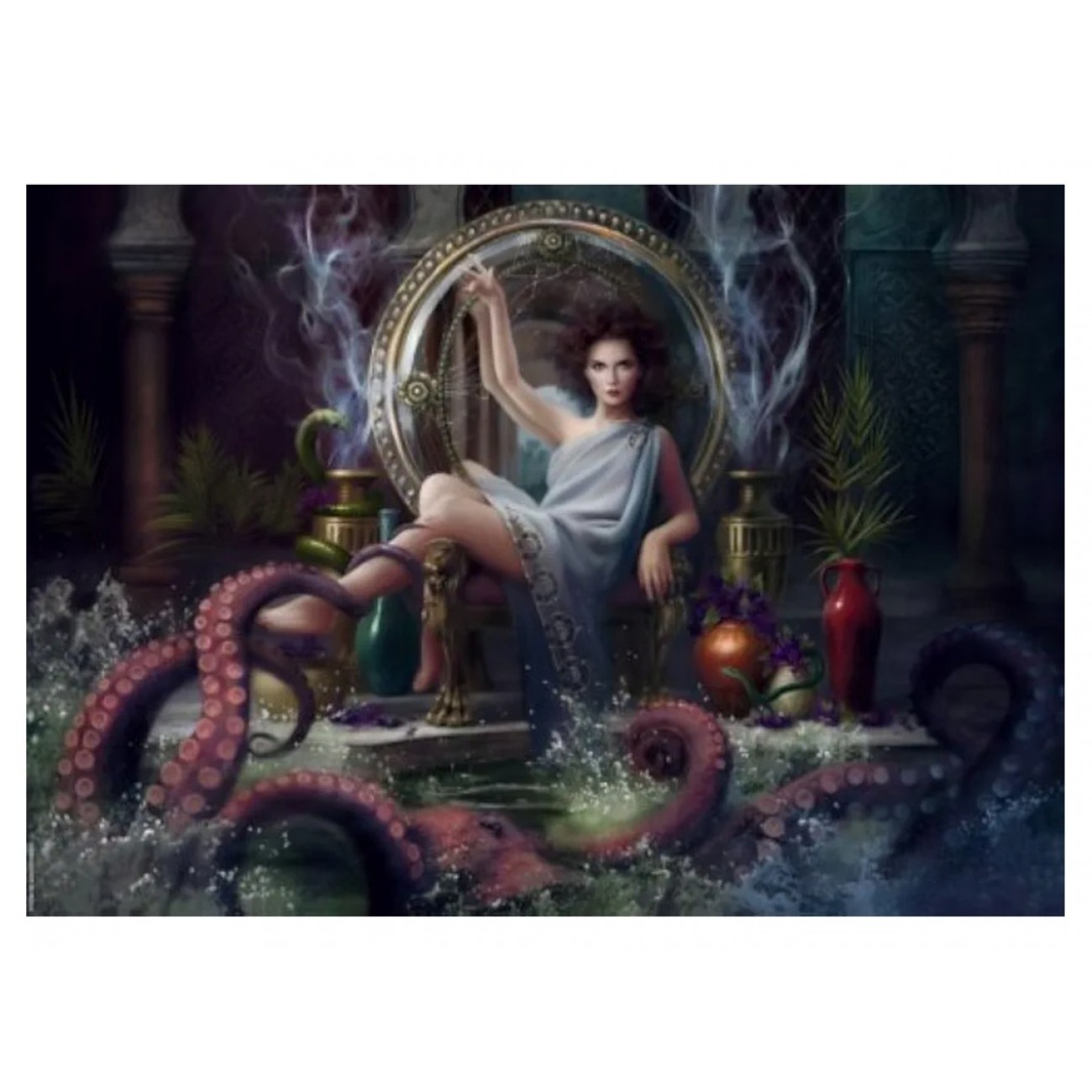 Пориньте у світ магії та таємниць з пазлом "Octopus". На картині зображена загадкова жінка на троні, оточена димом та щупальцями велетенського восьминога. Це не просто гра, а справжній виклик для досвідчених поціновувачів пазлів завдяки складним колірним переходам та великій кількості деталей. Продукція Heye відома своєю бездоганною якістю друку та ідеальним приляганням елементів.> Характеристики: