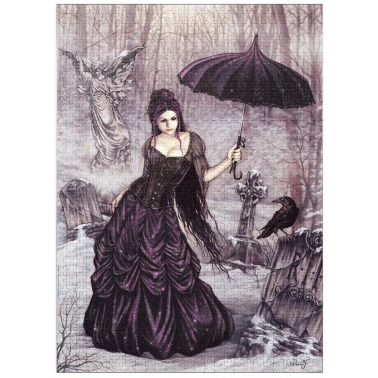 Пориньте у містичний світ готичного фентезі з пазлом «Angel» (Ангел). Це полотно іспанської художниці Вікторії Франсес переносить у вир романтики та таємниць, де головна героїня в розкішній сукні серед засніженого кладовища створює атмосферу меланхолії та краси.ктеристики:
