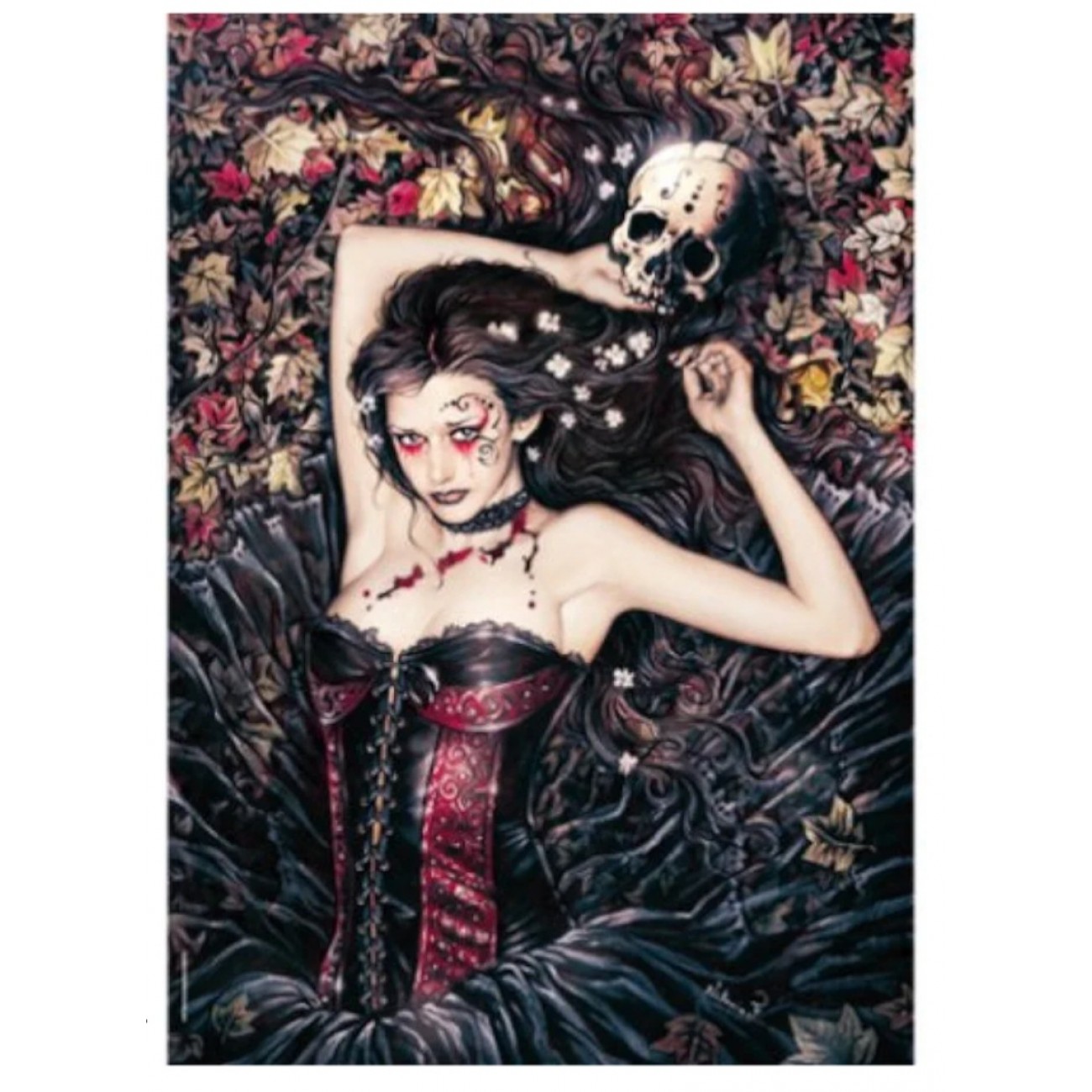 Пориньте у світ готичної містики з одним із найбільш вражаючих сюжетів іспанської художницірії Франсес. Картинаes"ідома під назвою"Favole III: Frozen Light) — це справжній шедевр темної романтики, що поєднує в собі красу, меланхолію та таємничість нічного саду. Зображення готичної дівчини з черепом на тлі осіннього листя стане не лише викликом для вашого інтелекту, а й справжньою окрасою інтер'єру.ктеристики: