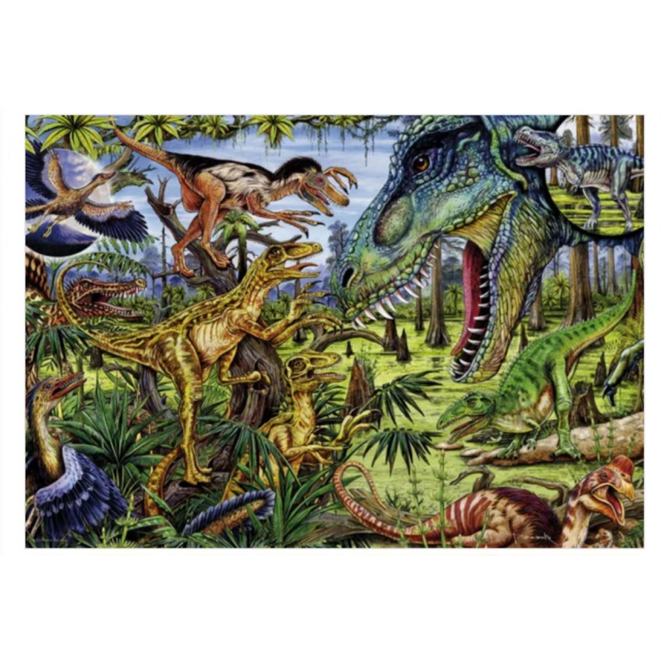 Цей пазл — справжня знахідка для шанувальників доісторичного світу та деталізованих ілюстрацій, із преміальної серії & Faunaцького бренду/b> перенесе вас у епоху динозаврів, де кожен елемент сповнений динаміки та яскравих барв. Відчуйте велич прадавньої природи з пазлом "Carnivores" (Хижаки)! На ілюстрації зображено захопливу сцену з життя найвідоміших хижаків мезозойської ери: від гігантського Тиранозавра до спритних Велоцирапторів у густих тропічних джунглях.