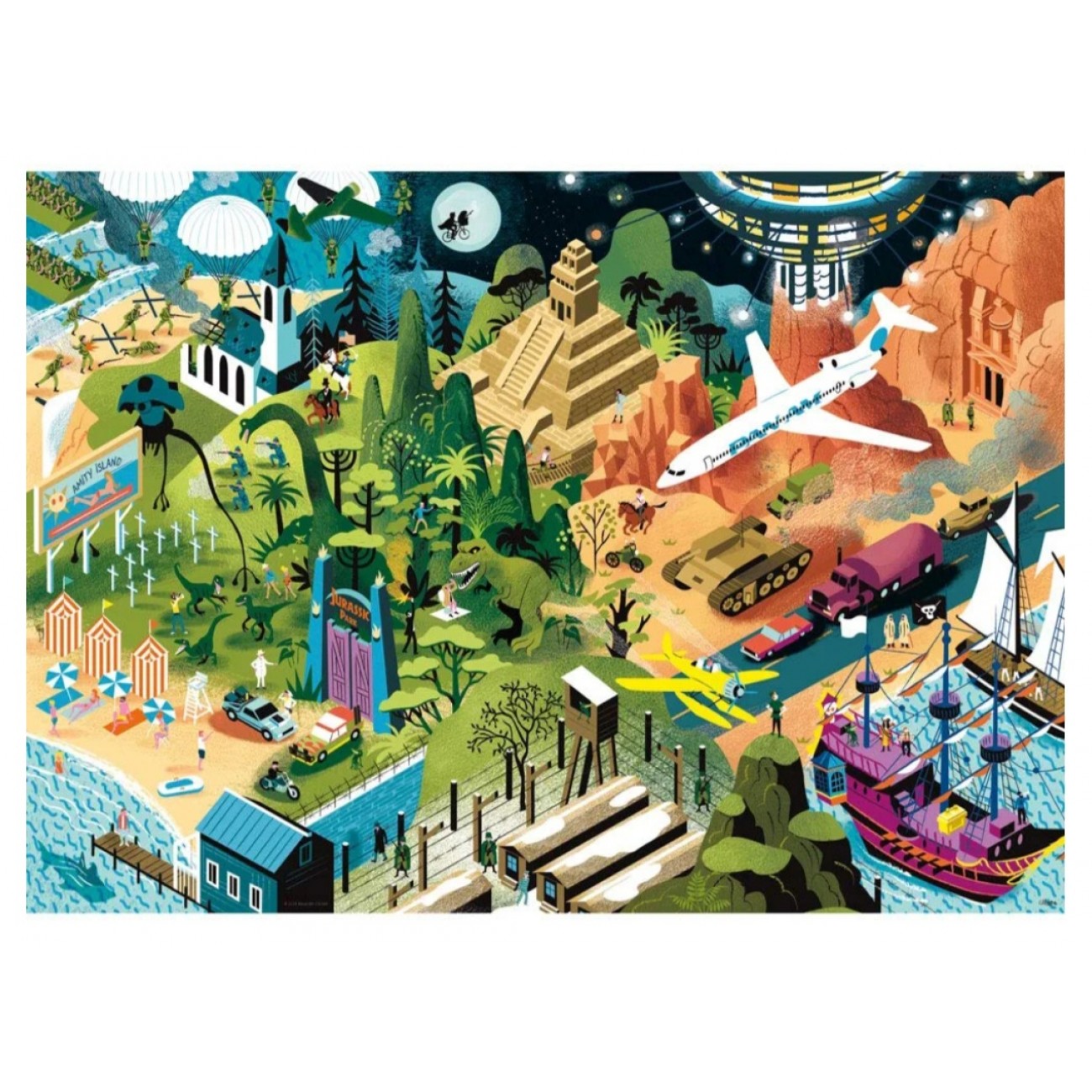Пориньте у золоту еру кінематографа з преміальним пазлом від німецького бренду/b>. На ілюстрації художника Александра Клерісса (Alexandre Clérisse) майстерно об'єднані найвідоміші кіношедеврина Спілберга: від напружених ...