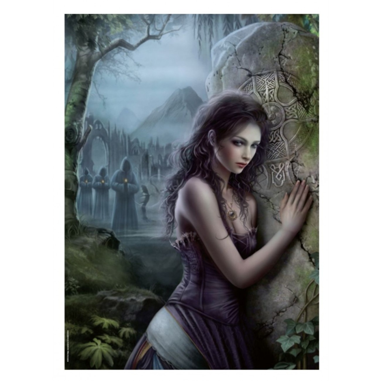 Пориньте в атмосферу містики та давніх легенд із пазлом"Celtic Cross" (Кельтський хрест) від преміального німецького бренду Heye, що входить до відомої готичної серії "Forgotten" , створеної іспанською художницею Кріс Ортега. На ілюстрації зображена тендітна дівчина, що притулилася до покинутого кам'яного хреста, вкритого вигадливим різьбленням, у той час як на задньому плані крізь туман проступають загадковів капюшонах.