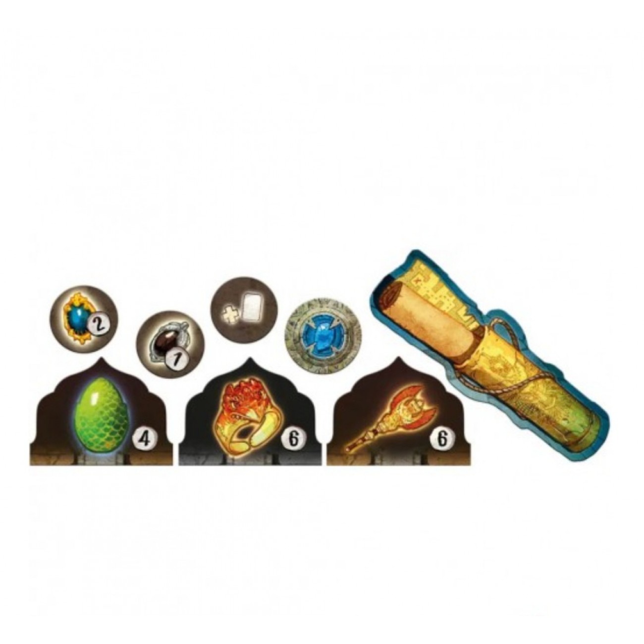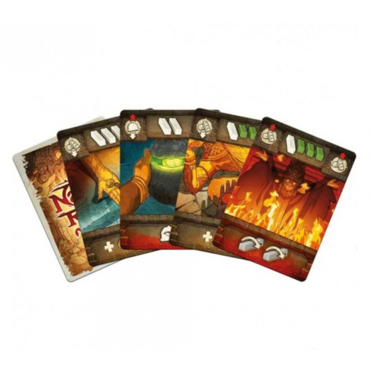 • інтриг:те карти, щоб змінювати результат кидків, переміщувати плитки храму або навіть заважати планам суперника. Кожна партія — це нова стратегічна дуель.
